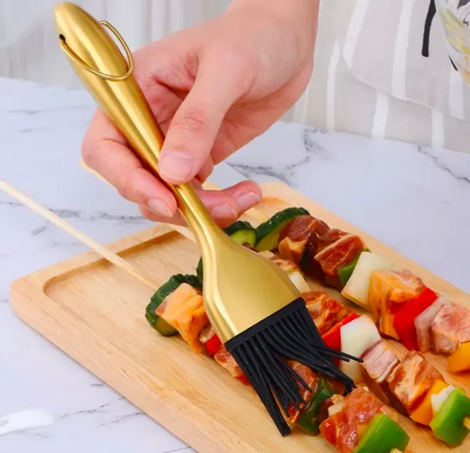 Очень красивая кулинарная кисть с рукояткой из стали с силиконовой щеточкой.
