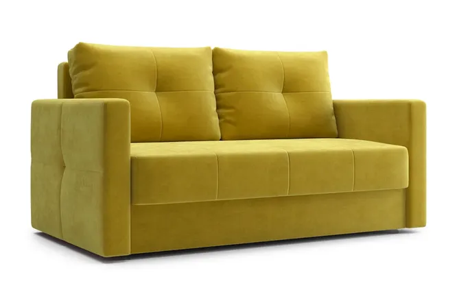 Механизм «еврокнижка» достаточно прост в использовании и надежен — вам нужно взять переднюю часть дивана за ручку, слегка приподнять, и она выдвинется вперед, раскладывая спинку. На промофото мы видим стальные опорные ножки, и нам обещают нагрузку на спальное место до 120 килограмм. Все же мы скорее рекомендовали бы использовать этот диван как дополнительное спальное место для гостей, чем как постоянную замену кровати. В том числе из-за беспружинного основания из пенополиуретана, поролона и войлока: такое основание — не лучшее, что вы можете сделать для своей спины.