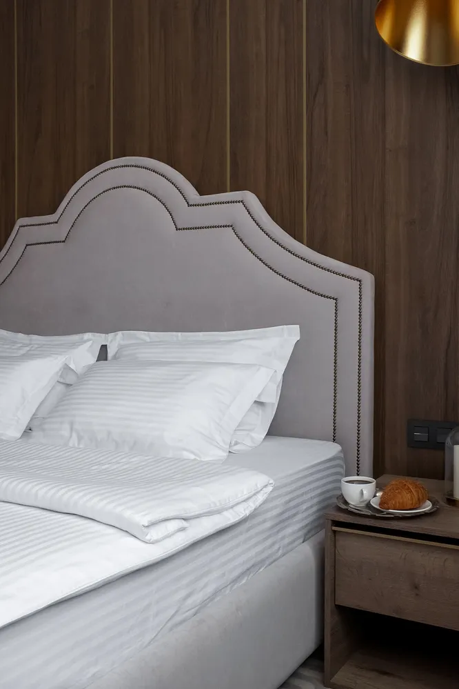 Заметили, как хорошо спится в дорогих отелях? Причина в том числе в качестве постельного белья. Для гостиниц его шьют, как правило, из перкаля или плотного страйп-сатина — хлопковых тканей, отличающихся повышенной гладкостью и износостойкостью. Простыни выглядят и ощущаются как хорошо отглаженная классическая рубашка, на них не холодно и не жарко, а белый цвет создаёт ощущение чистоты и новизны. В общем, одним комплектом тут не обойтись — захочется заменить все!