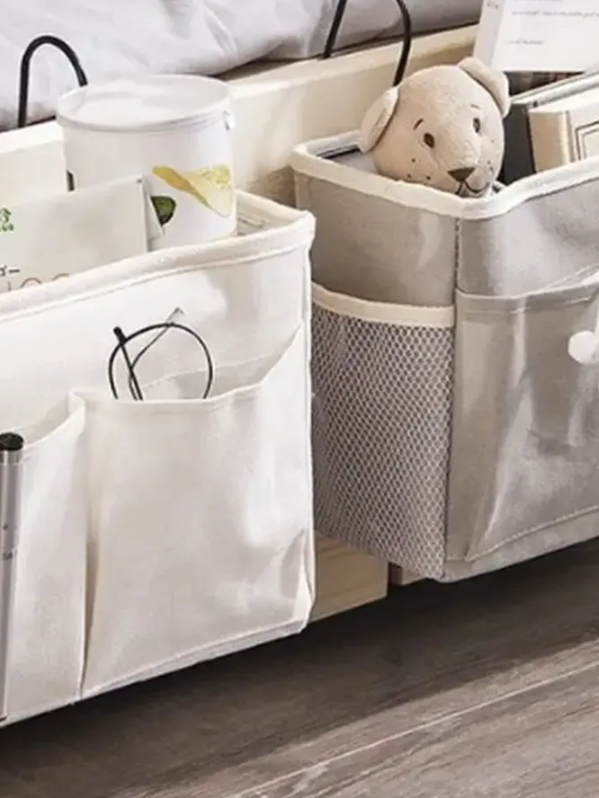 Прозрачные пластиковые подвесные кармашки нужны, скорее, для вещей, которыми вы часто пользуетесь. До всего можно сразу дотянуться, не вставая, и если нет места для прикроватной тумбочки – неплохое решение. В прозрачные пластиковые карманы поместятся книги, игрушки и туалетные принадлежности, пульт от телевизора, зарядка или бутылочка с детским питанием.