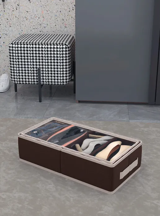 Поскольку под кроватью неизбежно скапливается большое количество пыли, все органайзеры должны быть с крышками. Тканевые кофры обычно прочные, но при этом гибкие, пропускают воздух и сохраняют содержимое чистым. Выбирайте с ручками, чтобы легче было доставать, и с прозрачным окошком, чтобы видеть, что внутри.