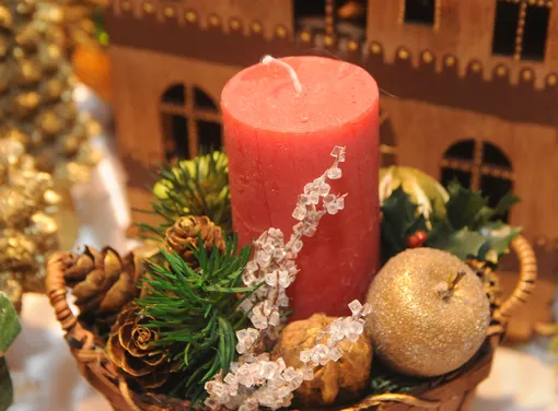 Яркая посуда, стеклянные предметы и ароматические свечи создают атмосферу балетного спектакля. Например, свечи с ароматами мятной конфеты, кедра или бальзама помогут усилить праздничное настроение.