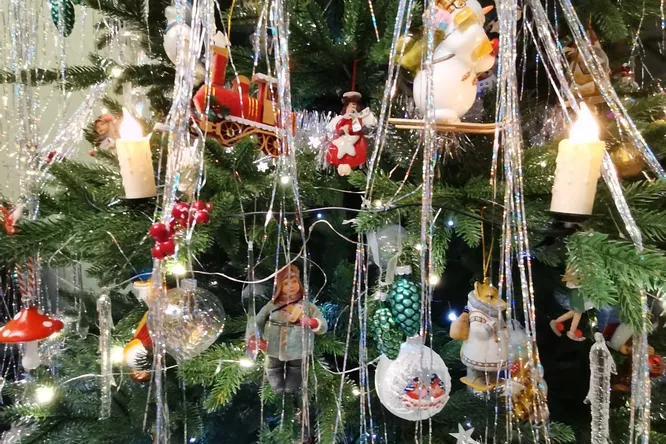 «Наша трёхметровая искусственная ёлка появляется в конце ноября — это уже многолетняя семейная традиция. В её украшении сочетаются элементы из разных эпох: от антикварных до современных прозрачных шаров и сосулек, формирующих эффект глубины.