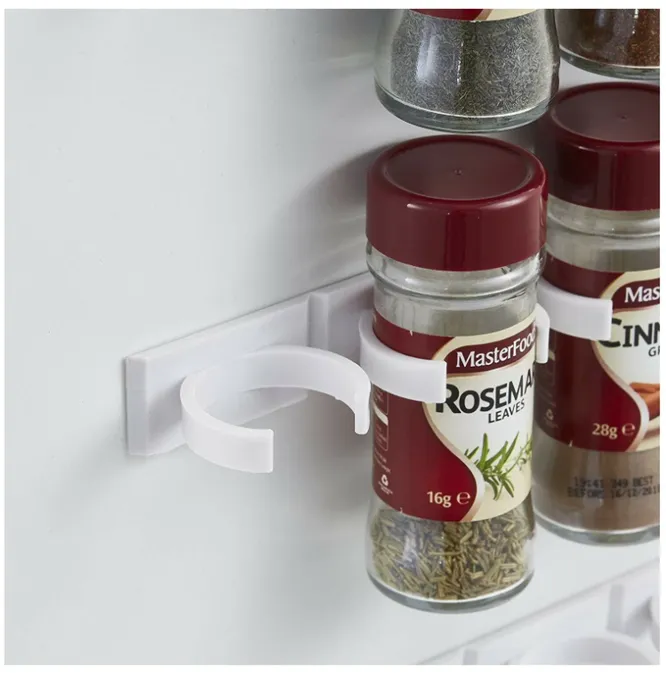 Благодаря этим миниатюрным зажимам вы сможете хранить около 20 баночек со специями, совсем не занимая ценное место на кухне. Они клеятся к гладкой поверхности на двойной скотч, поэтому разместить держатели можно в любом удобном для вас месте, к примеру, на дверце шкафа.