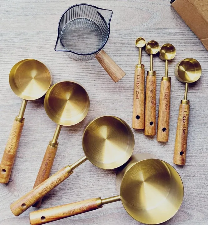 А это очень полезный набор для настоящих кулинаров и любителей делиться фотографиями своих рецептов в соцсетях. Мерные ложечки помогут точно измерять ингредиенты при готовке, а ещё в наборе есть мерный стакан из жаропрочного стекла с деревянной ручкой и двумя носиками, которые позволяют наливать жидкость в любую сторону и любой рукой.