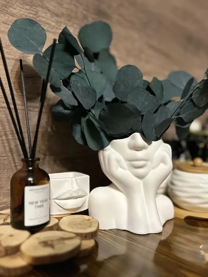 Небольшая вазочка-органайзер из гипса и в качестве декоративного кашпо подойдет, и как подставка для канцтоваров, кистей для макияжа, конфет или бижутерии. На полке будет очень симпатично смотреться среди книг, цветочных кашпо или подсвечников.