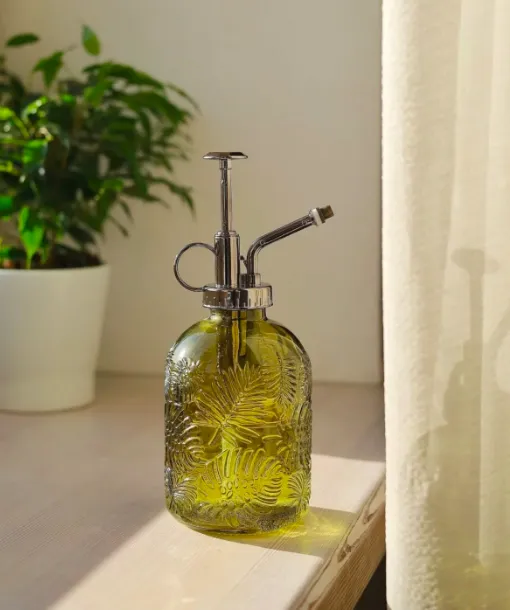 Считаем, что даже такая мелочь, как распылитель для цветов, должен быть приятен глазу и украшать подоконник. А зеленый цвет бутылки особенно хорошо сочетается с разными оттенками зелени.