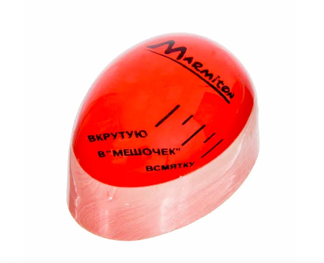 Новый вариант кухонного таймера, который не издает никаких звуков, зато меняет цвет по мере приготовления яиц. Перед началом варки его нужно кинуть в ту же посуду, где варятся яйца, и в процессе варки он начнёт изменять цвет с красного на белый, начиная от внешнего контура. Степень готовности соответствует делениям: всмятку, в мешочек или вкрутую. Сделан таймер из прочного органического стекла, так что служить будет очень долго.