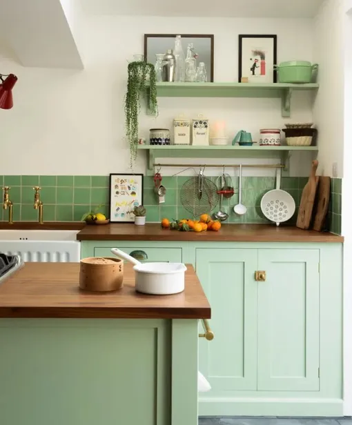 Красивый декор безусловно придаёт пространству характер, но на маленькой кухне он должен быть ещё и функциональным, чтобы не усложнять готовку и уборку. Дизайнеры предлагают рассмотреть вариант с красивыми баночками для специй или графинами для масел, или кухонную утварь.