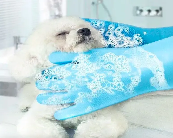 Перчатки с «пупырками» тоже многим успели понравиться. Их используют для купания собак или кошек (питомцам нравится). Удаляют шерсть с диванов, кресел и другой мягкой мебели. Получается быстро и удобно, потом перчатки можно просто промыть под проточной водой. Но это не всё: их используют для ручной стирки деликатных изделий, для отмывания посуды от прилипших остатков еды, для мытья раковин и ванн, для очищения обуви, посуды, чтобы быстро убрать остатки налипшего сыра или сырого теста, для мытья корнеплодов — картофеля, моркови, свёклы и даже для чистки рыбы.