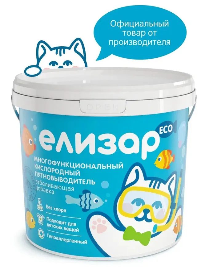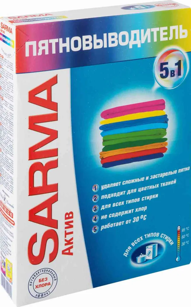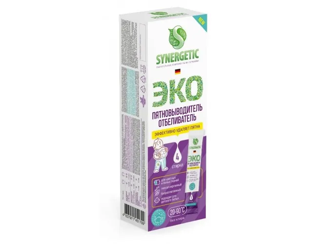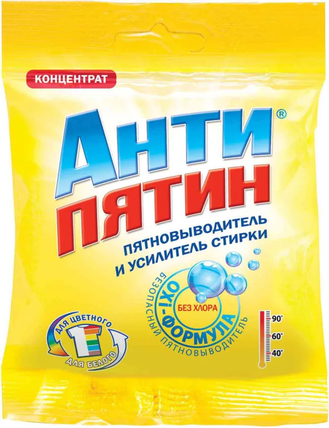 Экологичный и гипоаллергенный кислородный пятновыводитель: в процессе реакции распадается на соду, воду и активный кислород. Можно использовать для цветных и белых тканей. Действует очень эффективно, но для активации необходима максимальная горячая вода. Нельзя использовать для шерсти, шелка, кожи и замши. Зато для кухонных полотенец, постельного белья и футболок в пятнах просто незаменим. Справляется даже с очень старыми и сложными загрязнениями, когда кажется, что ничего уже не поможет.