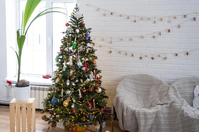Более низкая температура в помещении также помогает предотвратить преждевременное высыхание новогодней елки. «Деревья выделяют влагу через испарение, а чем жарче, тем быстрее оно происходит», — объясняет Хейг. Сделав свежий спил на елке, сразу же поместите ее в воду и поддерживайте подставку полной. Тогда новогодняя елка будет выглядеть свежей и здоровой не менее 2-3 недель.