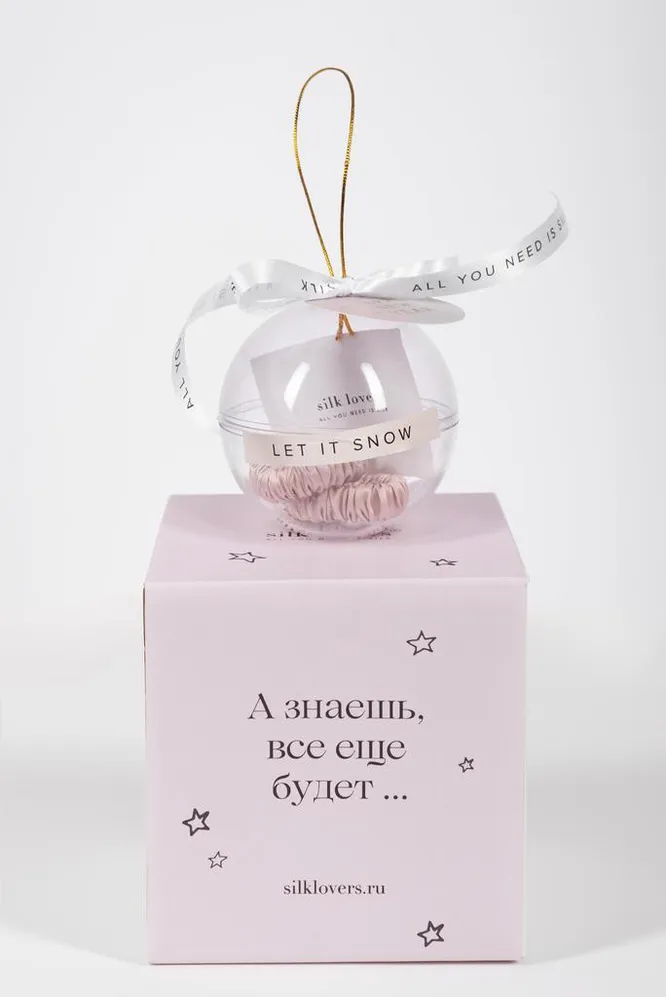 Вместо силиконовых пружинок, заколок или резинок из бархата, предлагаем подарить резинку из натурального шелка, которая бережёт волосы. Они не спутываются, не обламываются внутри хвоста и не электризуются. Шелковые резинки подходят для любой длины и типа волос — кудрявых, тонких, густых или прямых, а сейчас продаются в елочных шарах, внутри которых конфетти и бирка для поздравлений.