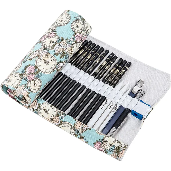 Такой набор можно подарить вместе со скетчбуком — раскраской, а можно отдельно. Рисуют сейчас очень многие, и ваш подарок может стать хорошим поводом попробовать себя в творчестве. В наборе есть все самые необходимые материалы для создания набросков, эскизов и графических работ различной сложности: угольные и простые карандаши разной степени твердости, растушевки, держатель для карандаша, канцелярский нож, точилка, ластик и ластик-клячка.
