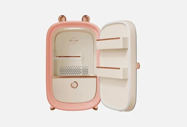Мини-холодильник подойдет не только для бьюти-средств: косметики с натуральным или органическим составом, сыворотки, крема, тканевых масок и патчей, но и для лекарств, так что заменит домашнюю аптечку. У него есть даже полочка из стекла и три варианта оттенков на выбор. Можно размещать и большие упаковки.