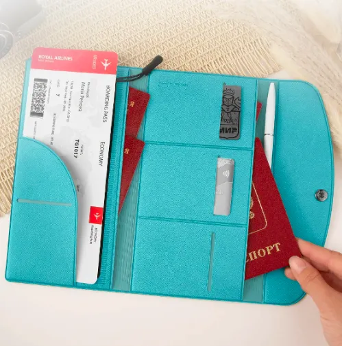Компактная, но вместительная папка-органайзер из экокожи — удобное решение для документов. Внутрь легко поместится 4 паспорта, есть отделения для билетов, банковских карт и наличных денег.