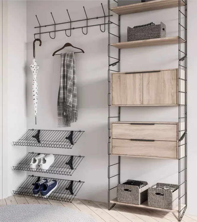Такую обувницу удобно разместить прямо под вешалкой для одежды — она экономит пространство и помогает задействовать каждый сантиметр прихожей. Отличное решение для хранения повседневной обуви в небольших прихожих. Однако стоит учесть один момент: мокрую или грязную обувь на такую полку ставить нельзя без специального поддона.
