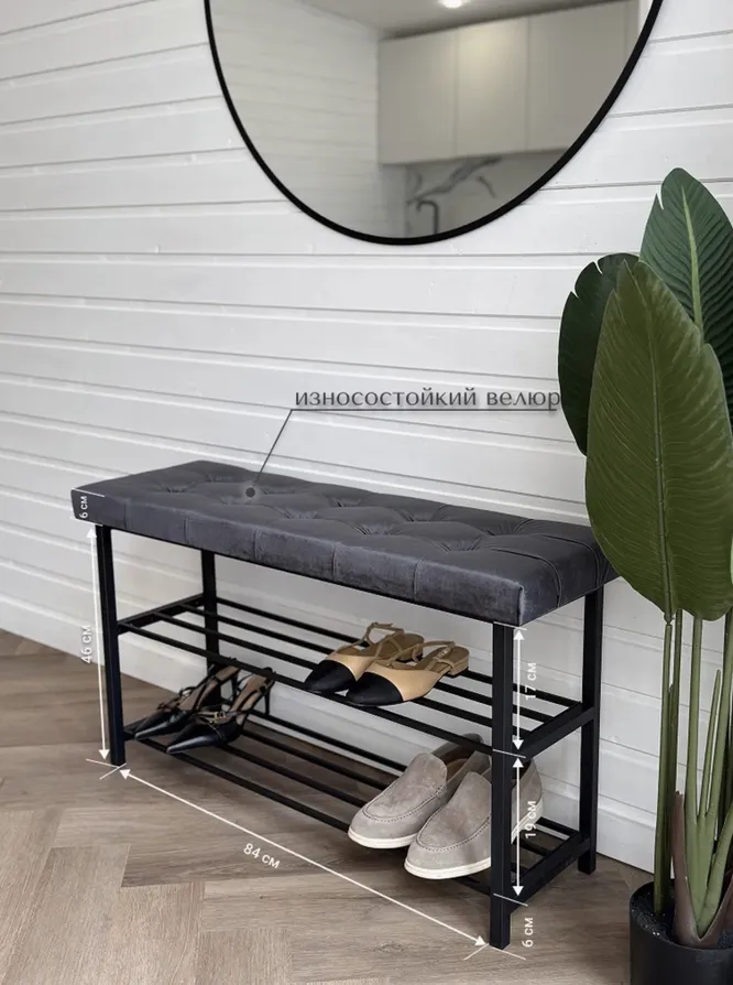 Такой вариант отлично подойдёт для небольших помещений, где на счету каждый сантиметр. Так вы не просто сэкономите пространство, а получите функциональное решение «два в одном»: удобное посадочное место, на котором комфортно обуваться, и одновременно — систему хранения для повседневной обуви.