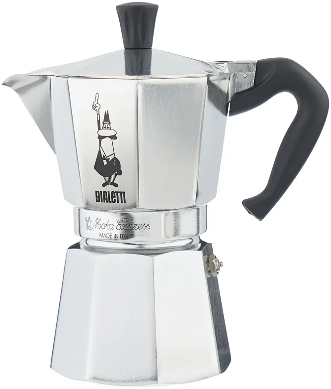 Moka Express занесена в Книгу рекордов Гиннесса как самая популярная кофеварка в мире и признана одним из символов Италии. Восьмиугольная форма кофеварки позволяет равномерно и быстро распределять тепло во время заваривания, в результате чего получается крепкий ароматный кофе менее чем за 5 минут при оптимальной температуре. Кофеварка изготовлена из литого алюминия. Она подходит для всех типов электрических и газовых плит (исключая индукционные). Объём: 240 мл (6 чашек для эспрессо по 40 мл).