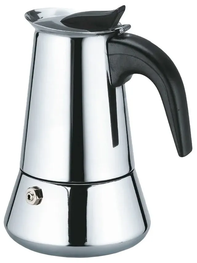 Кофеварка изготовлена из нержавеющей стали. Она отлично подходит для приготовления кофе на электрических и газовых плитах, а также других нагревающихся поверхностях, в том числе индукционных. Объём: 400 мл (10 чашек для эспрессо). Имеет теплоизоляционную ручку и предохранительный клапан давления.