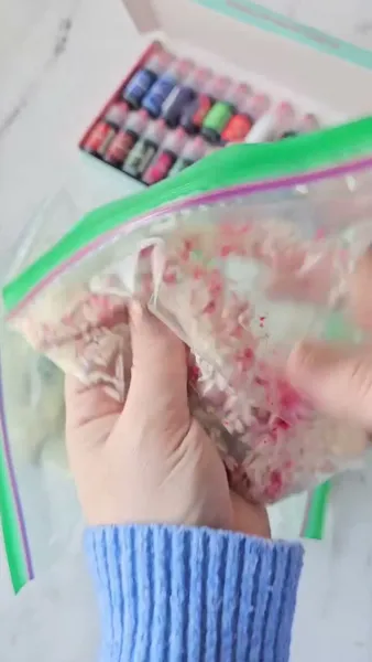 Всё просто: наполните несколько зип-пакетов рисом, добавьте в каждый по несколько капель жидкого красителя выбранного оттенка, хорошо перемешайте содержимое и приступайте к творчеству! Плюсов у такого метода два и оба весомых. И детские ручки останутся идеально чистыми, и можно получить интересные эффекты, например, смешав в одном пакете рис двух цветов.
