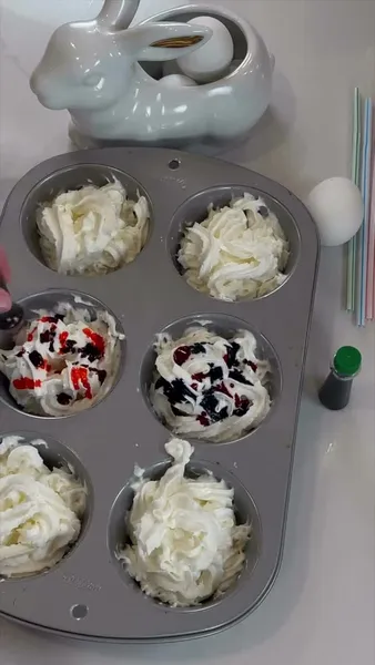 Несколько лет назад стала популярна похожая техника окрашивания яиц – только в пене для бритья. Что бы ни говорили блогеры, а этот продукт вряд ли можно назвать полностью безопасным — всё-таки скорлупа негерметична. Так что следом за трендом родился новый, заменивший несъедобную косметическую пену на взбитые сливки.