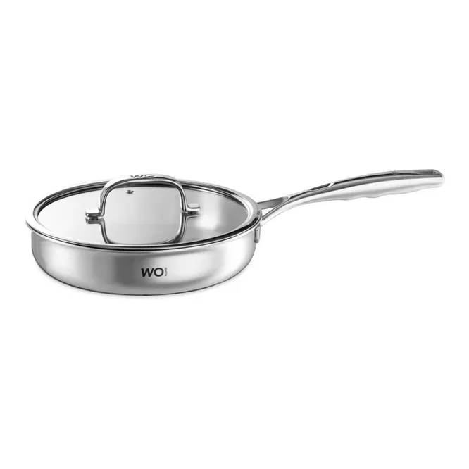 Современное решение для тех, кто ценит качество, стиль и удобство в повседневной готовке. Изготовленная из прочной нержавеющей стали 18/10, она устойчива к коррозии, безопасна при контакте с кислотами и легко очищается. Благодаря трёхслойной конструкции Tri-Ply с алюминиевым сердечником тепло распределяется равномерно по всей поверхности — от центра до краёв, что обеспечивает эффективное приготовление и экономит энергию. Сковорода подходит для всех типов плит, включая индукционные, и может использоваться в духовке: до 240 °C без крышки и до 180 °C с крышкой. Эргономичные полые ручки остаются прохладными при готовке, обеспечивая комфорт и безопасность. Стеклянная крышка с пароотводом даёт возможность следить за процессом, а бортик против разбрызгивания помогает аккуратно сливать жидкости.