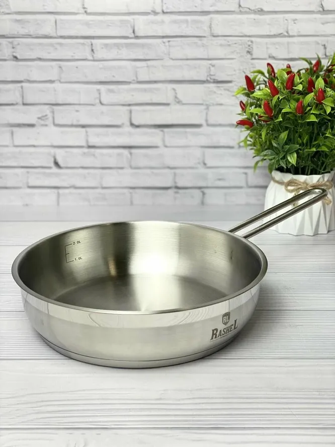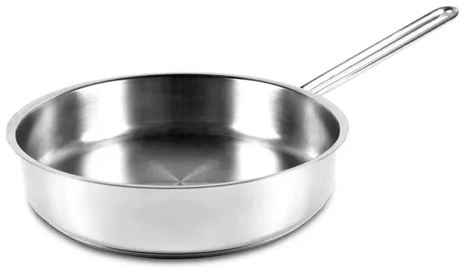 Выбирайте модели, изготовленные из стали 18/10 — считается золотым стандартом для кухонной посуды из нержавейки. Что это значит? В составе такой стали — 18% хрома и 10% никеля. Хром защищает металл от ржавчины и делает поверхность устойчивой к царапинам, а никель помогает сохранить блеск, устойчивость к кислотам и общей коррозии. В итоге посуда из 18/10 не мутнеет и не покрывается пятнами и остаётся как новая даже при активной эксплуатации. Такие сковородки легко очищаются, хорошо переносят высокие температуры и подходят для всех типов плит, включая индукционные.