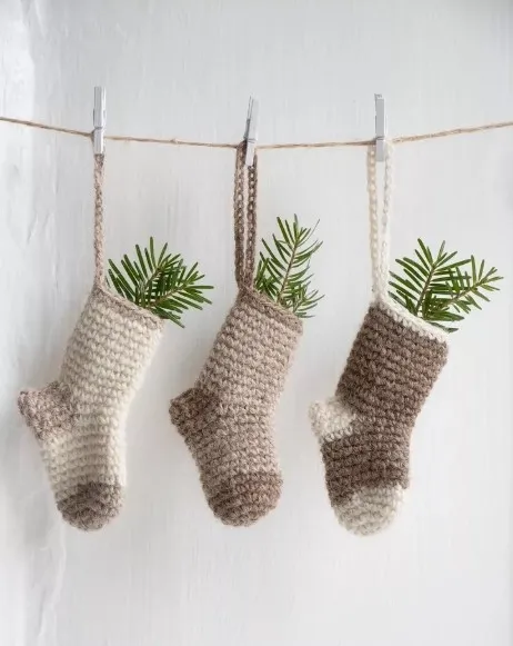 Праздничные носки рядком бок о бок можно повесить на специальные декоративные ручки, которые крепятся к стене. Вместо них можно использовать клеящиеся крючки, но в первом варианте декор приобретёт особый шарм.