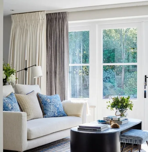 В качестве материала для штор дизайнеры советуют обратить внимание на тяжелые бархатные занавески. Они отлично сохраняют тепло и добавляют интерьеру роскоши. Эксперты также рекомендуют вешать шторы на металлические крючки-кольца или зажимы для эстетической и практической целей. Это придаст драпировке элегантный вид, а также занавески будет легче открывать и закрывать.