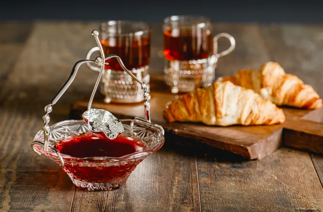 Кстати, уже можно доставать варенье, которое готовили летом из «своих» ягод. Только обязательно переложите его в красивую вазочку — она придаст сервировке утончённость. Вазочка на фото продаётся вместе с удобной ложкой, которая подвешивается на ручку. Изготовлена из стекла и украшена декором из нержавеющей стали с покрытием из серебра. Малиновое, вишнёвое или клубничное варенье будет смотреться в ней очень красиво.