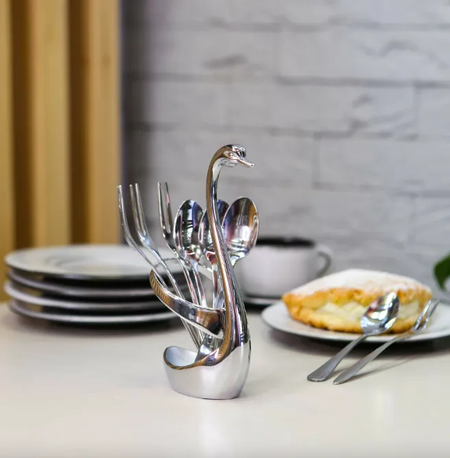И последняя приятная мелочь — подставка на стол с тремя чайными ложками и тремя чайными вилками. Все предметы изготовлены из высококачественной нержавеющей стали. Если нужно быстро накрыть на стол, очень удобно: не придётся носить приборы из кухни в комнату и раскладывать каждому гостю — взяли подставку со всем необходимым и поставили сразу на стол.