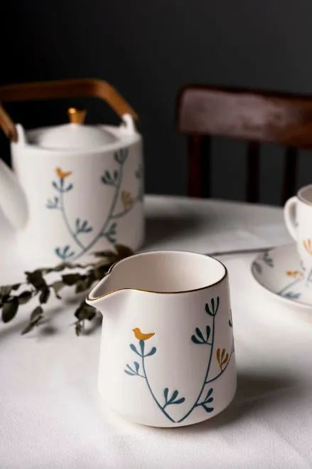 Изящный фарфоровый сливочник от российского бренда BILLIBARRI — нежный и очень уютный. Изготовлен из фарфора. Удобная форма носика в молочнике обеспечивает наливание сливок или молока без проливания капель.