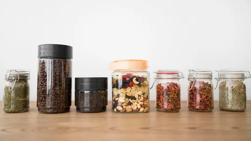 Такие продукты, как сахарный песок, соль, сода, уксус, специи, чайная заварка и кофе всегда должны храниться в хорошо закрытых стеклянных емкостях и подальше от солнечного света. Тогда их срок годности заметно увеличится. К тому же, они не приобретут посторонних запахов.