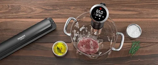 Бренд бытовой техники Hotpoint представляет набор для приготовления еды по методу «су-вид»: продукты помещаются в вакуумную упаковку и затем медленно готовятся при постоянной температуре на водяной бане. Эта технология позволяет сохранить не только мягкость и сочность мяса, рыбы или овощей, но и пищевую ценность продуктов.