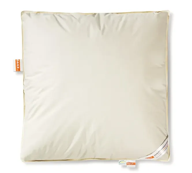 - Подушки с наполнителем из овечьей или верблюжьей шерсти. Эти подушки мягкие и тёплые, обладают хорошей влагопоглощающей способностью и вентиляцией. Однако они обычно не служат долго, всего около 5 лет, и могут сбиваться в комки, требуя химчистки. Людям с аллергией или астмой они тоже могут не подойти.