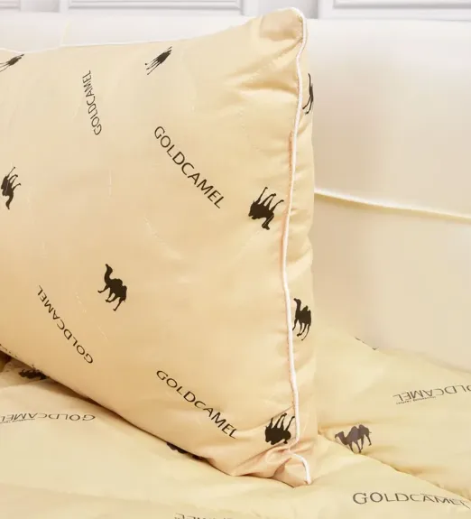 Стеганный чехол выполнен из тиковой ткани. Подушка имеет наполнитель — натуральная верблюжья шерсть и силиконизированное волокно. Периметр подушки обработан прочным кантом, который не позволяет строчке распускаться. Средняя жёсткость, гипоалергенная.