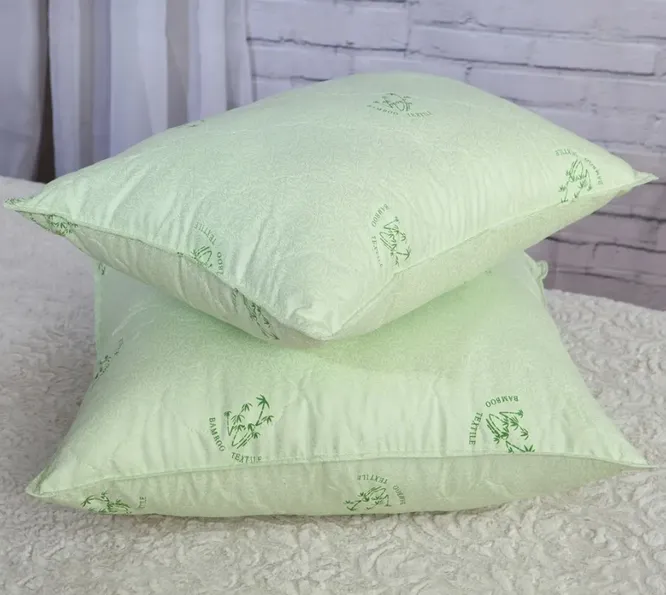 - Подушки с наполнителем из бамбука. Безопасный вариант для всех. Материал не скапливается в комки, может стираться в машине и долго служить. Преимущество также в быстром высыхании, низком весе и слабой впитывающей способности посторонних запахов.
