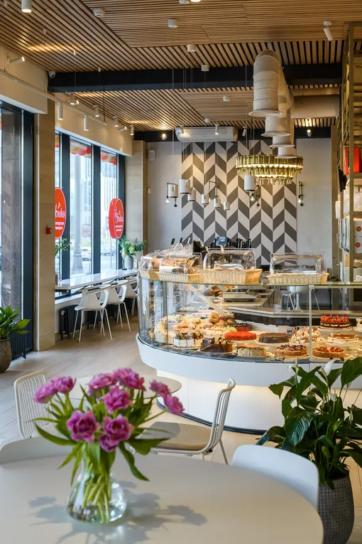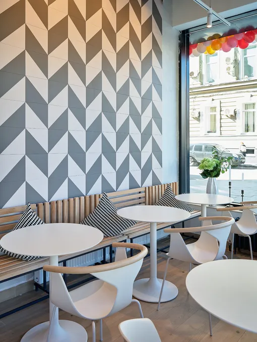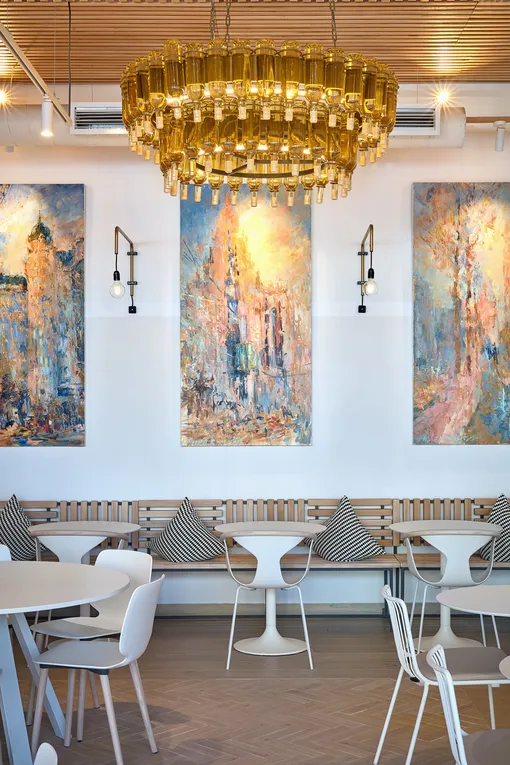 Кстати, о Франции. Гастрономическое наслаждение не было бы столь сильным без очарования атмосферой. На Садовой-Триумфальной дизайнерам удалось соединить дух весенней Москвы и утонченного Парижа. Поэтому паркет уложен «французской елочкой», на потолке — «винные» люстры, а стены украшены геометрическими панно и атмосферной живописью. Что может быть лучше, чем час безмятежности, проведенный в красивом месте с вкусной едой?
