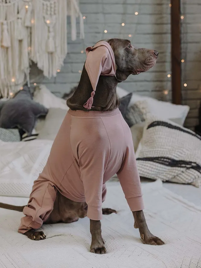 Чтобы «басечке» всегда было тепло и приятно после душа, нужна пижамка из тонкого футера. Застёгивается по спинке на кнопки, в комплекте есть колпачок с кисточкой, а стильный пыльно-розовый оттенок подчеркнет цвет глаз и блеск шерсти.