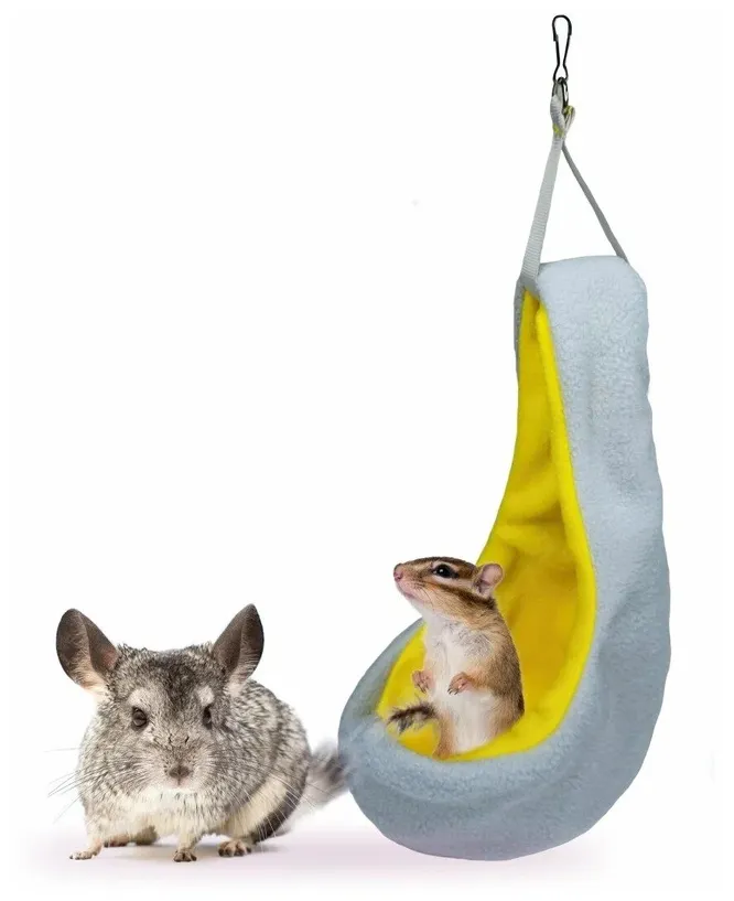 Хомячки и прочие грызуны, в отличие от собак и кошек, животные норные, поэтому им очень нравится зарыться куда-нибудь поглубже и дремать целый день. В качестве спального места лучше выбирать подвесной гамак. Нам понравился вариант в форме капли, потому что похож на норку. Сшит он из флиса, выглядит очень симпатично и подходит для любой клетки.