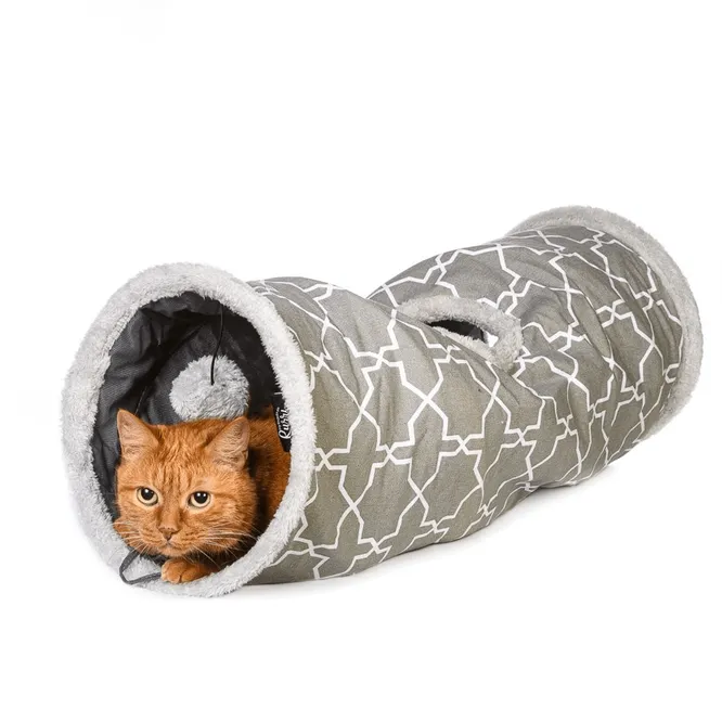 Очень любят коты (да и собаки тоже) шуршать и путешествовать по норкам. Этот тоннель на металлическом каркасе выполнен из прочного нейлона, привлекательно шуршит и легко складывается, если надо перевезти или убрать на хранение. Не оставит равнодушным ни одного котика, тем более, что можно всегда поиграть с игрушечным помпоном, который прикреплен на веревку в тоннеле.