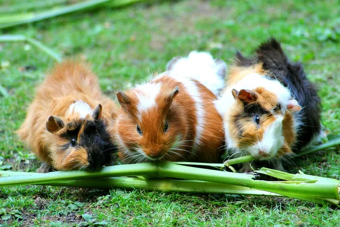 Морским свинкам необходимо постоянно что-то жевать потому, что зубы у этих грызунов растут беспрерывно в течение всей жизни. Оптимальный вариант еды на такой случай — сено, которое заодно и будет способствовать нормальному пищеварению.