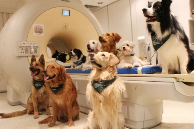 Эксперимент, описанный в журнале Science доказал, что собаки используют те же области мозга для расшифровки речи, что и люди. Ученые пропустили 13 собак через МРТ-сканирование. Собаки лежали неподвижно, слушая, что им говорят в этот момент хозяева.