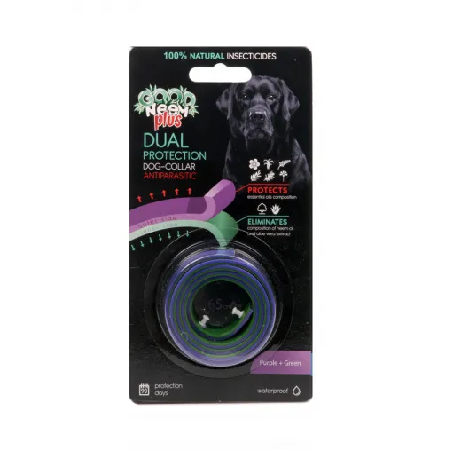Уникальность этого ошейника в том, что он состоит из двух слоев. Репеллент и инсектицид введены в разные слои ошейника, что позволяет эффективно защитить животное от всех видов кровососущих насекомых и паразитов. Верхний слой пропитан натуральными репеллентами (лавандой, чайным деревом, гвоздикой и розмарином), а нижний – инсектицидами (маслом ним). Помимо защитных свойств от эктопаразитов, ошейник улучает качество и общий вид шерсти, успокаивает зуд и раздражение и благотворно воздействует на иммунную систему.