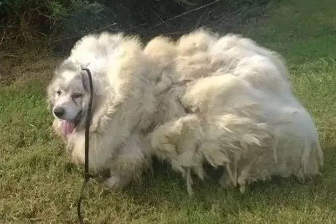 Эта история началась с неравнодушного мужчины, который забеспокоился о тяжелобольном соседе, редко выходящем из дома, и его собаке, которую, как он знал, сосед держал в закрытом сарае. Добрый самаритянин пригласил пару знакомых грумеров и пошел проверить питомца. Представшая перед их глазами картина вызвала шок! В грязном, заброшенном ненужными вещами сарае находился пёс в ужасно запущенном состоянии. Собака выглядела нездоровой, но больше всего поражал её внешний вид – на несчастном животном висели килограммы спутанной в колтуны шерсти, настолько тяжелые, что пёс едва мог стоять.