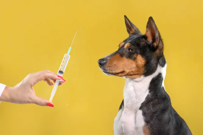 Укол чаще всего делают в холку или в бедро. Во время процедуры лучше держать собаку лицом к хозяину. Так питомец может даже не заметить манипуляций. После прививки похвалите его и выдайте лакомство.