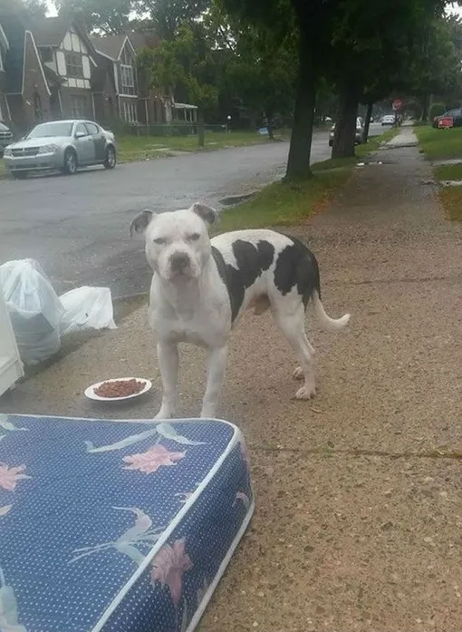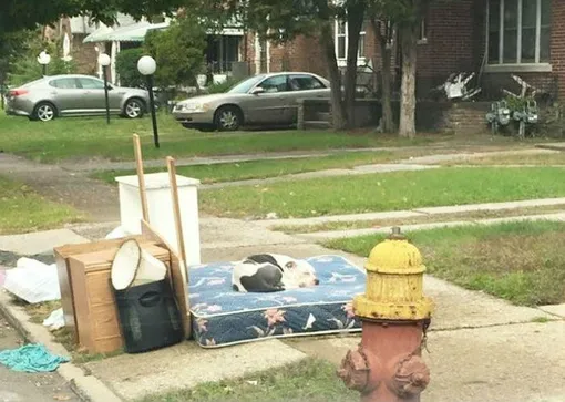 Семья выехала из своего дома в Детройте и оставила за собой горы мусора на газоне, сломанную мебель и... верную собаку.