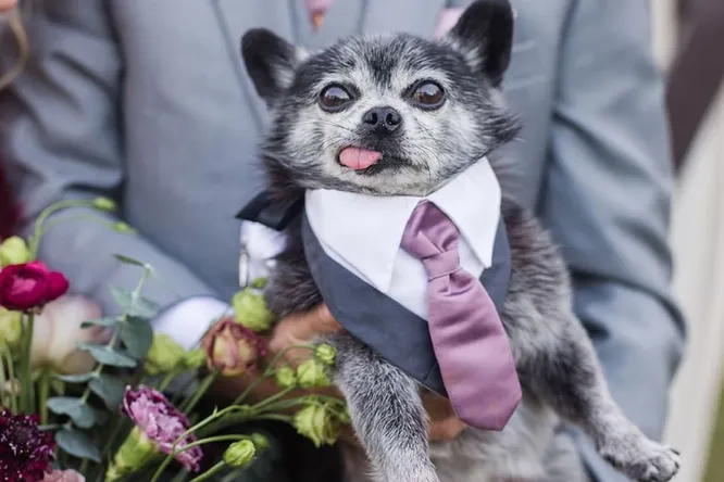 Они решили, что на свадебной церемонии Рокки получит главную роль: друга жениха и кольценосца. Ему купили крошечный костюм с роскошным галстуком, и пожилой песик смотрелся в нем просто очаровательно. И даже вечно вываленный набок из-за отсутствия нескольких передних зубов язык совершенно не портил образ. Рокки должен был пройти по проходу с кольцами перед всеми гостями, и пара надеялась, что у него не возникнет проблем с этим. Иногда Рокки вел себя, как сварливый старик, но он все-таки очень любил людей и обожал внимание.