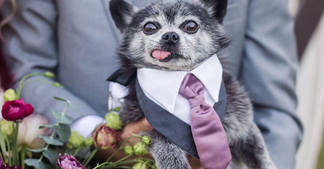 Влюбленные пригласили свидетелем на свадьбу пожилую собаку-мизантропа